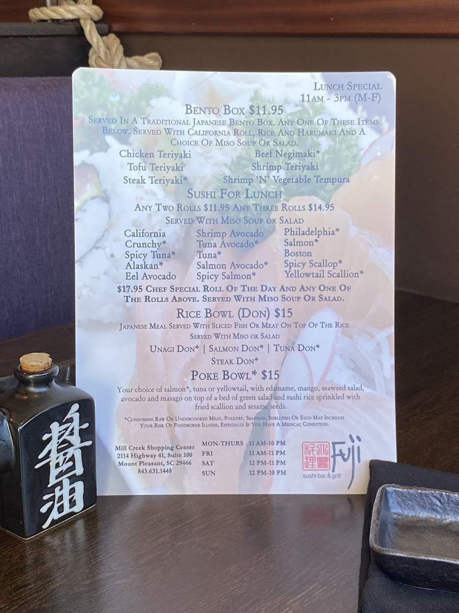 Welcome to Fuji Sushi & Bar & Grill, a culinary gem nestled in Mt. Pleasant, SC. Their menu is a delightful fusion of authentic Japanese flavors, showcasing a variety of dishes that cater to every palate.